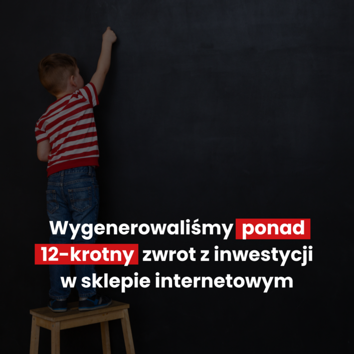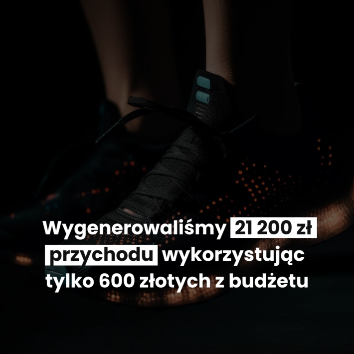 Branża Sklep sportowy Cel Zwiększenie sprzedaży w sklepie Opis projektu Wygenerowaliśmy 21 200 zł przychodu wykorzystując tylko 600 zł z budżetu reklamowego – to pozwoliło uzyskać aż 35 krotny zwrot z inwestycji! Naszym klientem został sklep sportowy, skupiający się głównie na asortymencie związanym z piłką nożną. W związku z mundialem, który miał miejsce, udało nam […]
